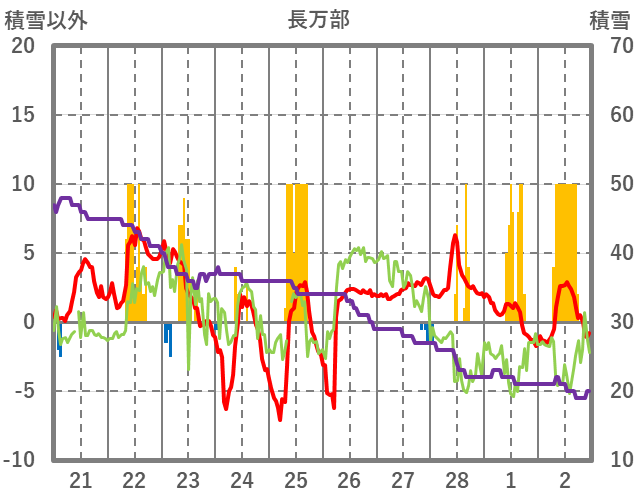 | 日 | 時 | 気温 | 降水 | 風向/風速 | 日照 | 積雪 | 降雪 |