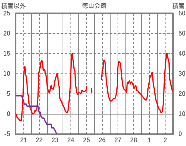 | 日 | 時 | 気温 | 降水 | 風向/風速 | 日照 | 積雪 | 降雪 |