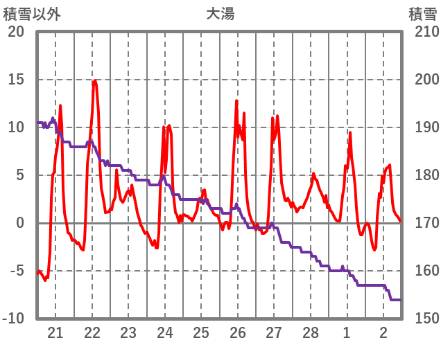 | 日 | 時 | 気温 | 降水 | 風向/風速 | 日照 | 積雪 | 降雪 |