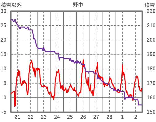 | 日 | 時 | 気温 | 降水 | 風向/風速 | 日照 | 積雪 | 降雪 |
