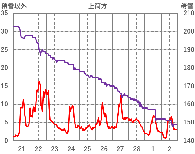 | 日 | 時 | 気温 | 降水 | 風向/風速 | 日照 | 積雪 | 降雪 |