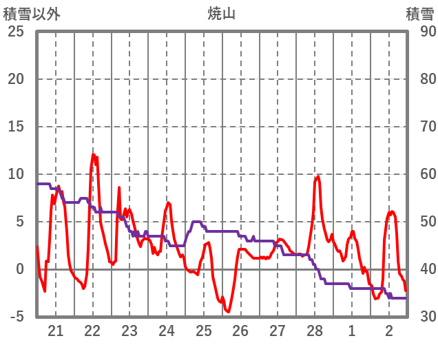 | 日 | 時 | 気温 | 降水 | 風向/風速 | 日照 | 積雪 | 降雪 |
