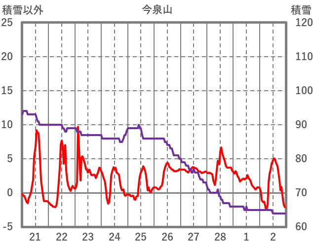 | 日 | 時 | 気温 | 降水 | 風向/風速 | 日照 | 積雪 | 降雪 |