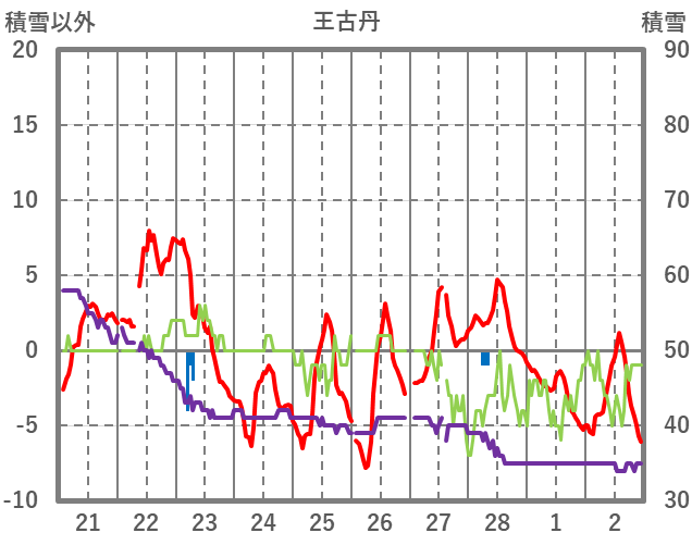| 日 | 時 | 気温 | 降水 | 風向/風速 | 日照 | 積雪 | 降雪 |