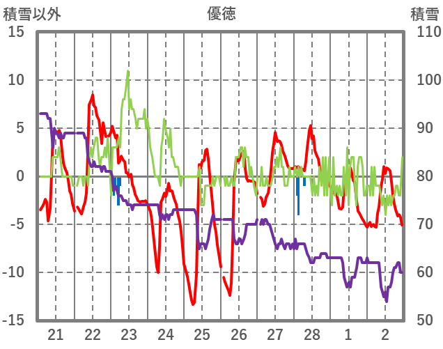 | 日 | 時 | 気温 | 降水 | 風向/風速 | 日照 | 積雪 | 降雪 |