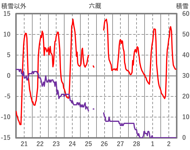 | 日 | 時 | 気温 | 降水 | 風向/風速 | 日照 | 積雪 | 降雪 |