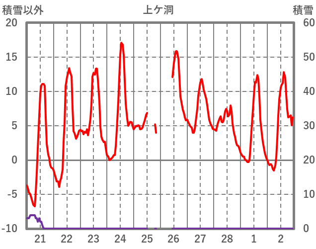 | 日 | 時 | 気温 | 降水 | 風向/風速 | 日照 | 積雪 | 降雪 |