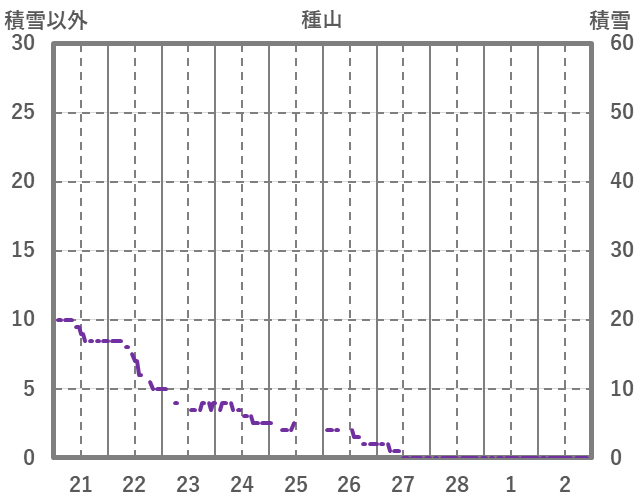 | 日 | 時 | 気温 | 降水 | 風向/風速 | 日照 | 積雪 | 降雪 |