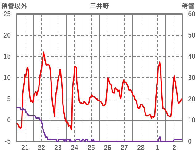 | 日 | 時 | 気温 | 降水 | 風向/風速 | 日照 | 積雪 | 降雪 |