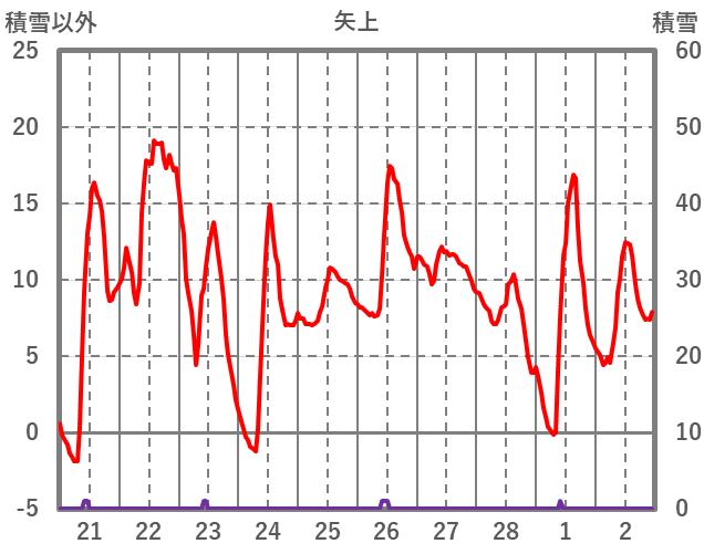 | 日 | 時 | 気温 | 降水 | 風向/風速 | 日照 | 積雪 | 降雪 |