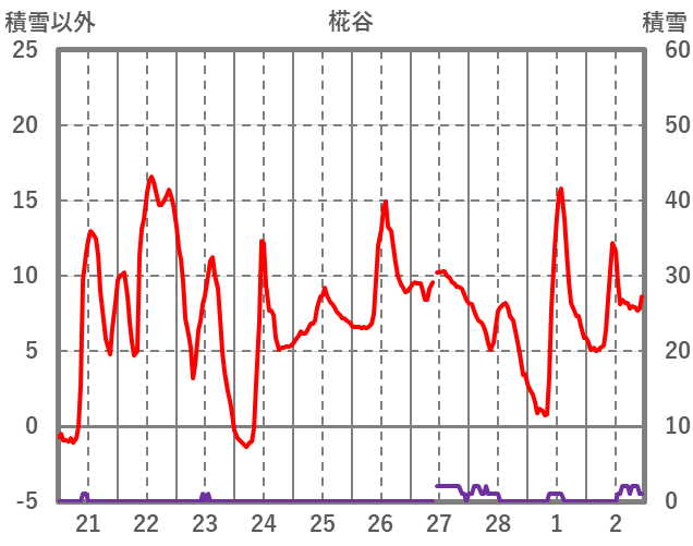 | 日 | 時 | 気温 | 降水 | 風向/風速 | 日照 | 積雪 | 降雪 |