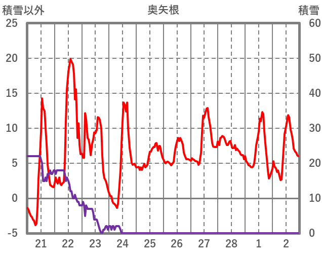 | 日 | 時 | 気温 | 降水 | 風向/風速 | 日照 | 積雪 | 降雪 |
