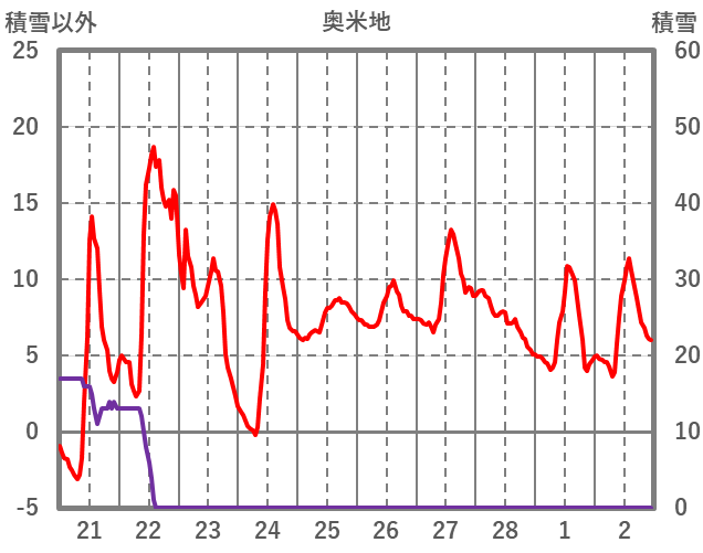 | 日 | 時 | 気温 | 降水 | 風向/風速 | 日照 | 積雪 | 降雪 |