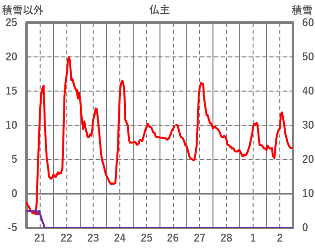 | 日 | 時 | 気温 | 降水 | 風向/風速 | 日照 | 積雪 | 降雪 |