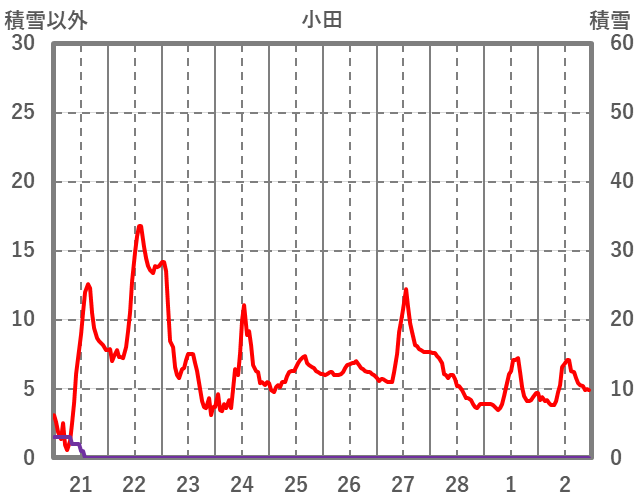 | 日 | 時 | 気温 | 降水 | 風向/風速 | 日照 | 積雪 | 降雪 |