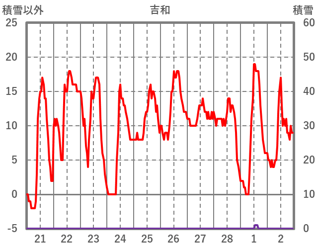 | 日 | 時 | 気温 | 降水 | 風向/風速 | 日照 | 積雪 | 降雪 |