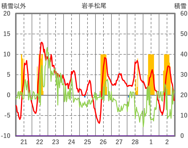 | 日 | 時 | 気温 | 降水 | 風向/風速 | 日照 | 積雪 | 降雪 |