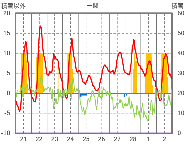 | 日 | 時 | 気温 | 降水 | 風向/風速 | 日照 | 積雪 | 降雪 |
