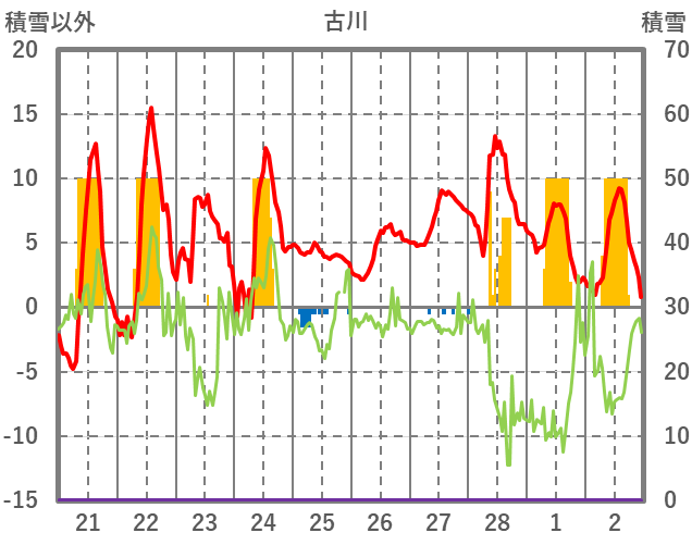 | 日 | 時 | 気温 | 降水 | 風向/風速 | 日照 | 積雪 | 降雪 |