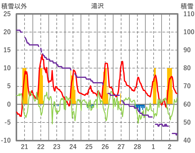 | 日 | 時 | 気温 | 降水 | 風向/風速 | 日照 | 積雪 | 降雪 |