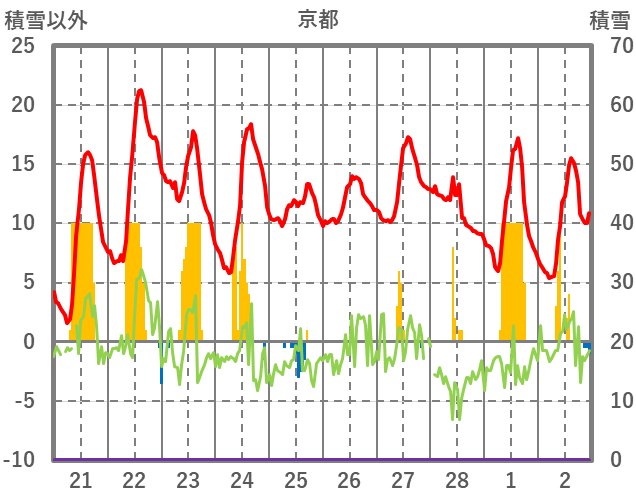 | 日 | 時 | 気温 | 降水 | 風向/風速 | 日照 | 積雪 | 降雪 |