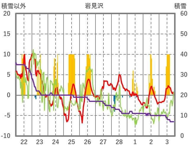 | 日 | 時 | 気温 | 降水 | 風向/風速 | 日照 | 積雪 | 降雪 |