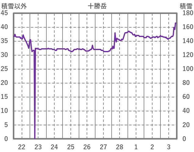 | 日 | 時 | 気温 | 降水 | 風向/風速 | 日照 | 積雪 | 降雪 |