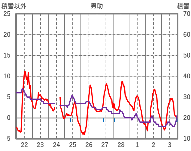 | 日 | 時 | 気温 | 降水 | 風向/風速 | 日照 | 積雪 | 降雪 |