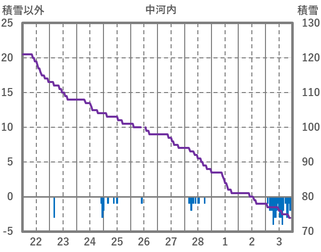 | 日 | 時 | 気温 | 降水 | 風向/風速 | 日照 | 積雪 | 降雪 |