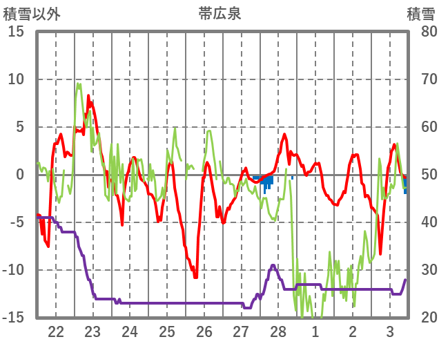 | 日 | 時 | 気温 | 降水 | 風向/風速 | 日照 | 積雪 | 降雪 |