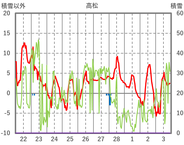 | 日 | 時 | 気温 | 降水 | 風向/風速 | 日照 | 積雪 | 降雪 |