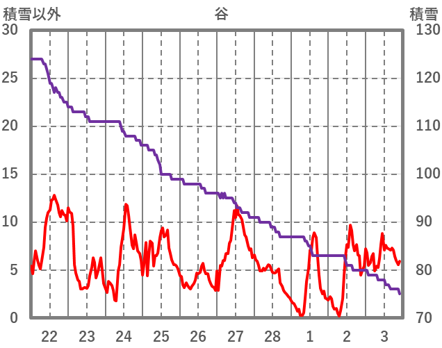 | 日 | 時 | 気温 | 降水 | 風向/風速 | 日照 | 積雪 | 降雪 |