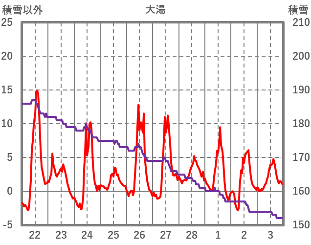 | 日 | 時 | 気温 | 降水 | 風向/風速 | 日照 | 積雪 | 降雪 |