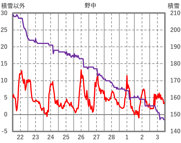 | 日 | 時 | 気温 | 降水 | 風向/風速 | 日照 | 積雪 | 降雪 |