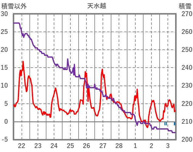 | 日 | 時 | 気温 | 降水 | 風向/風速 | 日照 | 積雪 | 降雪 |
