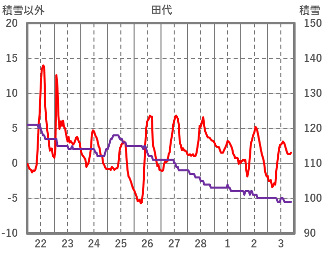 | 日 | 時 | 気温 | 降水 | 風向/風速 | 日照 | 積雪 | 降雪 |