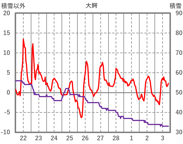 | 日 | 時 | 気温 | 降水 | 風向/風速 | 日照 | 積雪 | 降雪 |