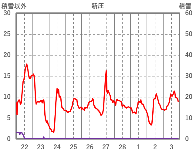 | 日 | 時 | 気温 | 降水 | 風向/風速 | 日照 | 積雪 | 降雪 |