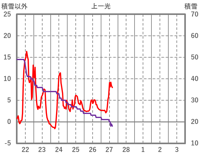 | 日 | 時 | 気温 | 降水 | 風向/風速 | 日照 | 積雪 | 降雪 |