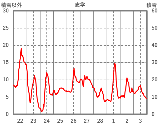 | 日 | 時 | 気温 | 降水 | 風向/風速 | 日照 | 積雪 | 降雪 |