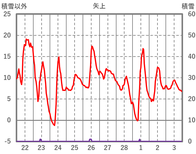 | 日 | 時 | 気温 | 降水 | 風向/風速 | 日照 | 積雪 | 降雪 |