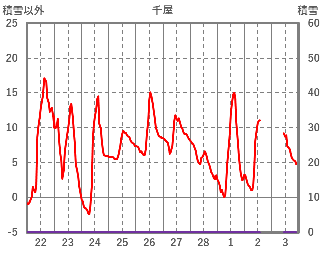 | 日 | 時 | 気温 | 降水 | 風向/風速 | 日照 | 積雪 | 降雪 |