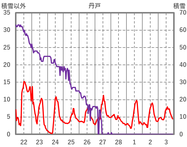 | 日 | 時 | 気温 | 降水 | 風向/風速 | 日照 | 積雪 | 降雪 |