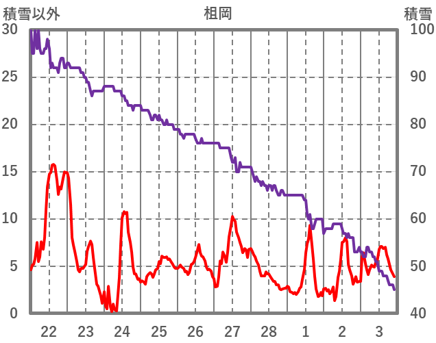 | 日 | 時 | 気温 | 降水 | 風向/風速 | 日照 | 積雪 | 降雪 |