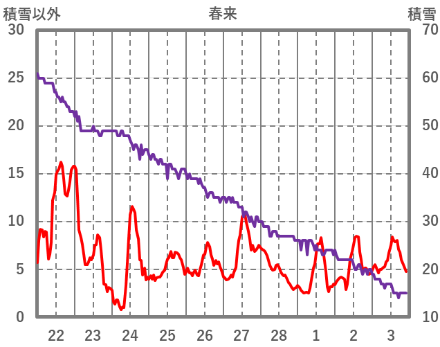 | 日 | 時 | 気温 | 降水 | 風向/風速 | 日照 | 積雪 | 降雪 |