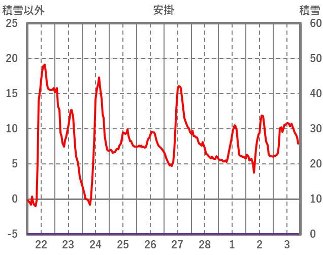 | 日 | 時 | 気温 | 降水 | 風向/風速 | 日照 | 積雪 | 降雪 |