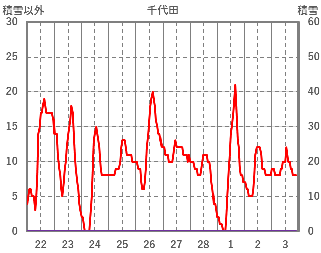 | 日 | 時 | 気温 | 降水 | 風向/風速 | 日照 | 積雪 | 降雪 |