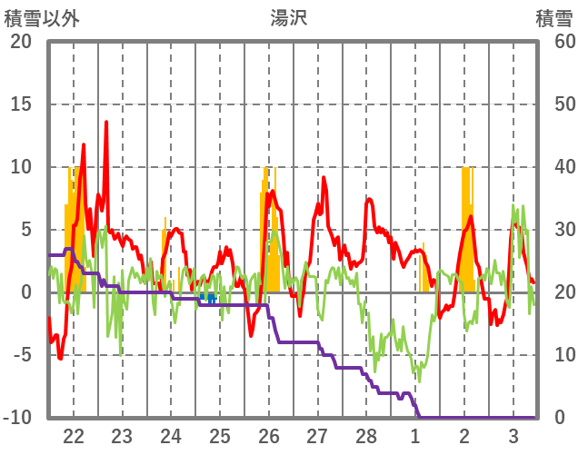 | 日 | 時 | 気温 | 降水 | 風向/風速 | 日照 | 積雪 | 降雪 |