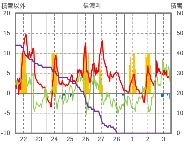 | 日 | 時 | 気温 | 降水 | 風向/風速 | 日照 | 積雪 | 降雪 |