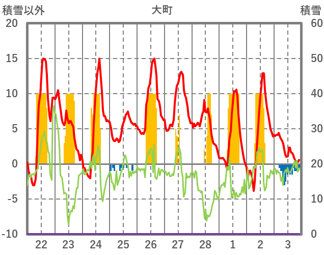 | 日 | 時 | 気温 | 降水 | 風向/風速 | 日照 | 積雪 | 降雪 |